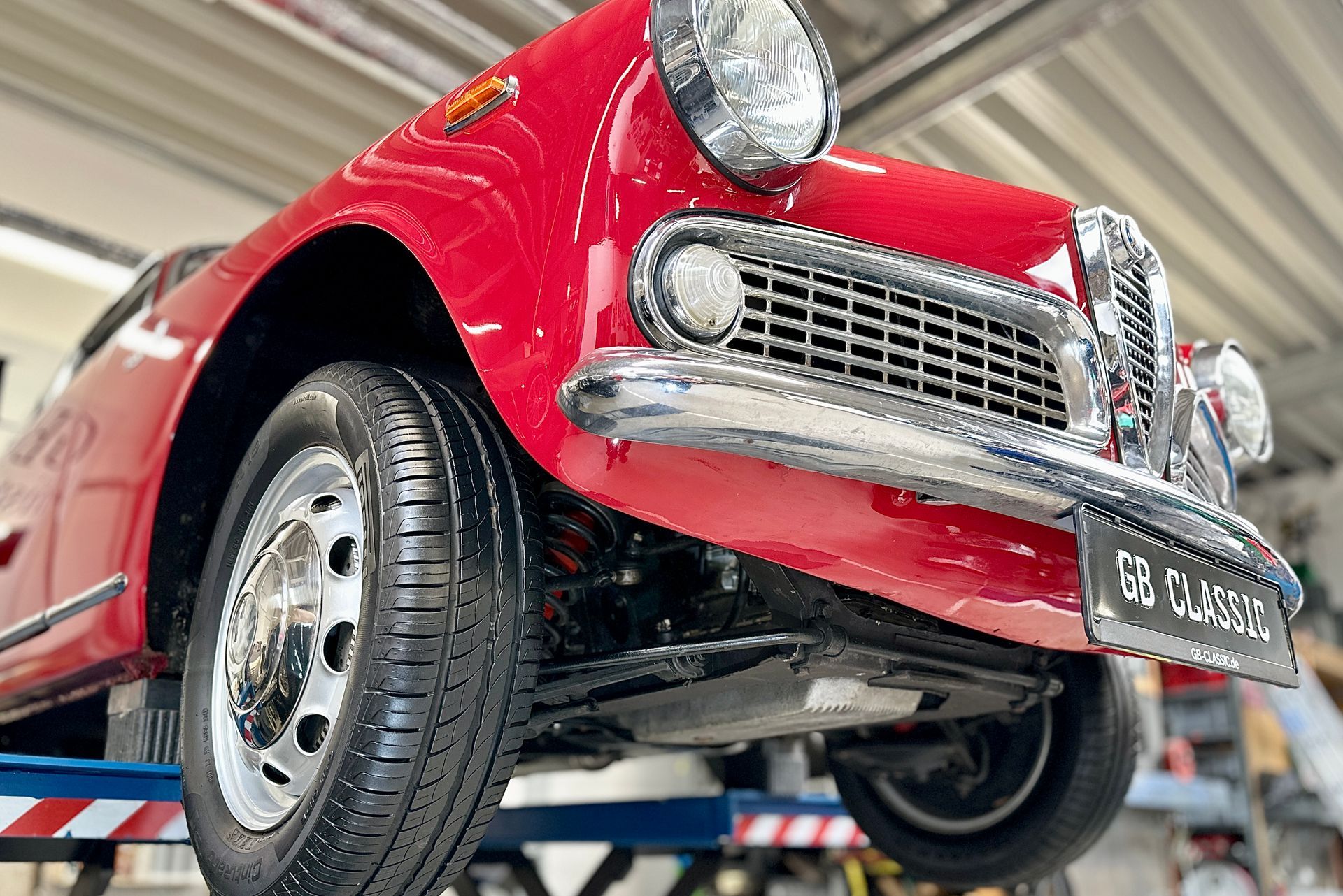 Diese wunderschöne Giulia ist neu in unserer Ausstellung. Der Wagen ist seit 11 Jahren bei einem Besitzer und wurde dort liebevoll gepflegt. Die Wartungen wurden in einer zuverlässigen Werkstatt erledigt. Vor gut 10 Jahren hat der Alfa eine neue Lackierung in der Original Farbe "Alfa Rot" erhalten. Die Sitze und die Rückbank sind neu gepolstert und wurden - anstelle des werkseitigen Vinyl - mit einem schwarzen Leder bezogen. Das Getriebe ist überholt und die Kupplung wurde ebenfalls erneuert. Ein Service ist soeben erledigt worden und die nächste Hauptuntersuchung ist erst wieder im März 2026 fällig. Der Zustand ist rundum sehr schön und der Unterboden sieht genauso aus, wie der Rest des Autos!