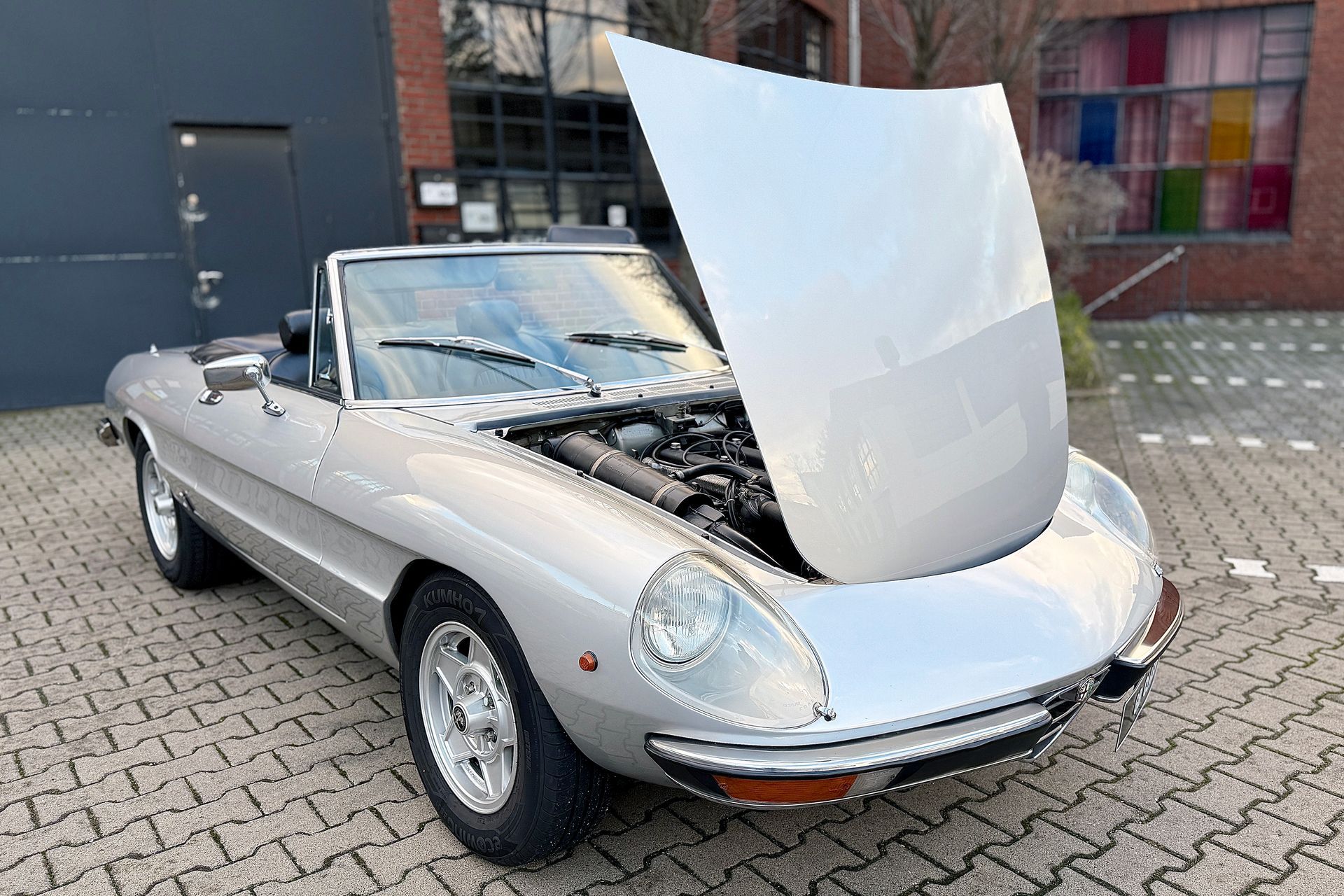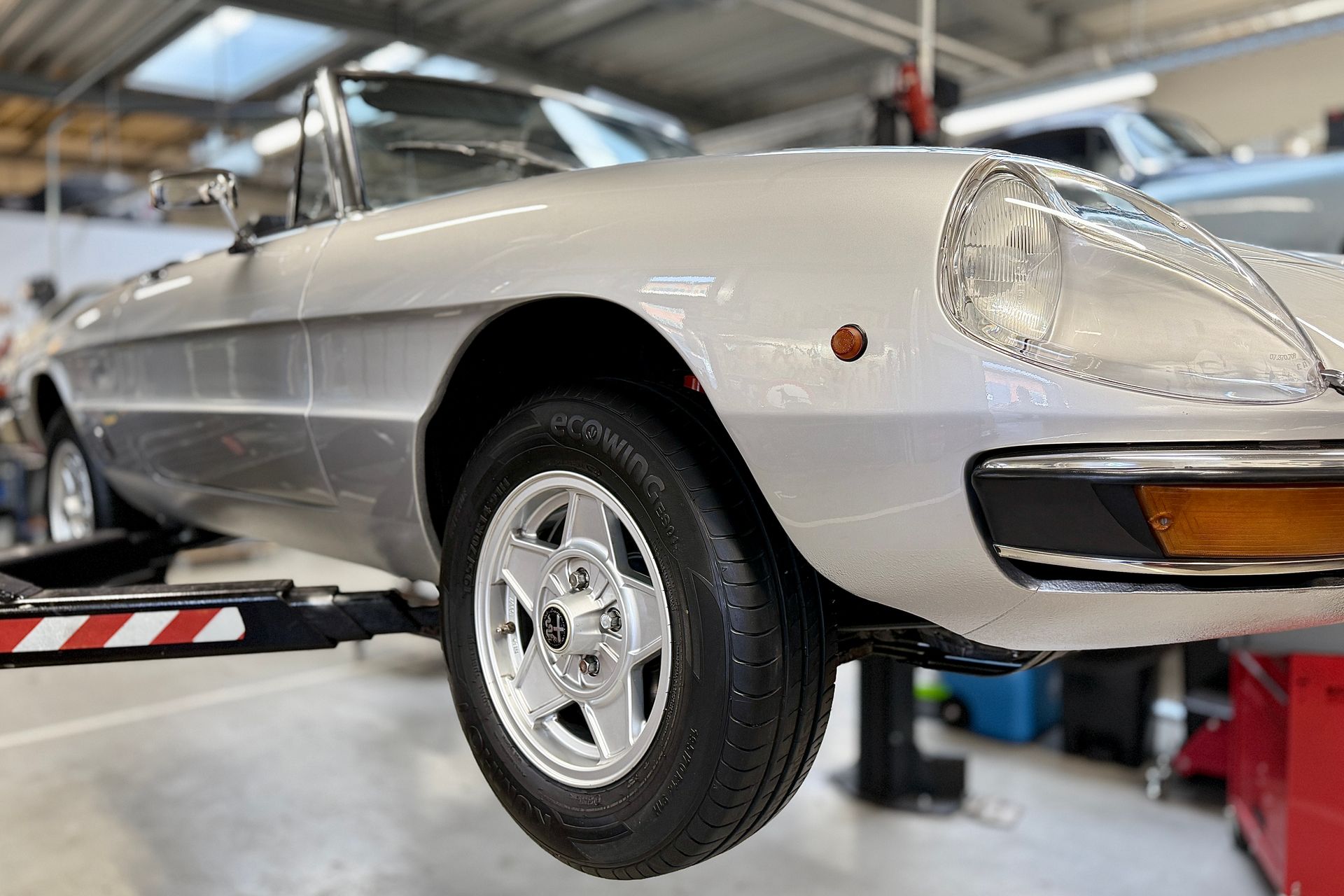 Dieser Alfa Romeo steht wirklich sehr schön dar! Die Farbkombination ist fantastisch und an Lack, Chrom und Innenausstattung kann man nichts aussetzen. 2017/2018 wurde der Wagen aufwendig restauriert und neu lackiert. Zwischen der Lackierung und heute sind dann nochmals gut € 12.000,00 investiert worden. Neben einer vor kurzem ausgeführten großen Inspektion wurde das Getriebe überholt sowie das Fahrwerk gründlich überarbeitet .... die Straßenlage ist jetzt perfekt - die typische Spider Hinterachse hat man erfolgreich in die Spur gebracht.