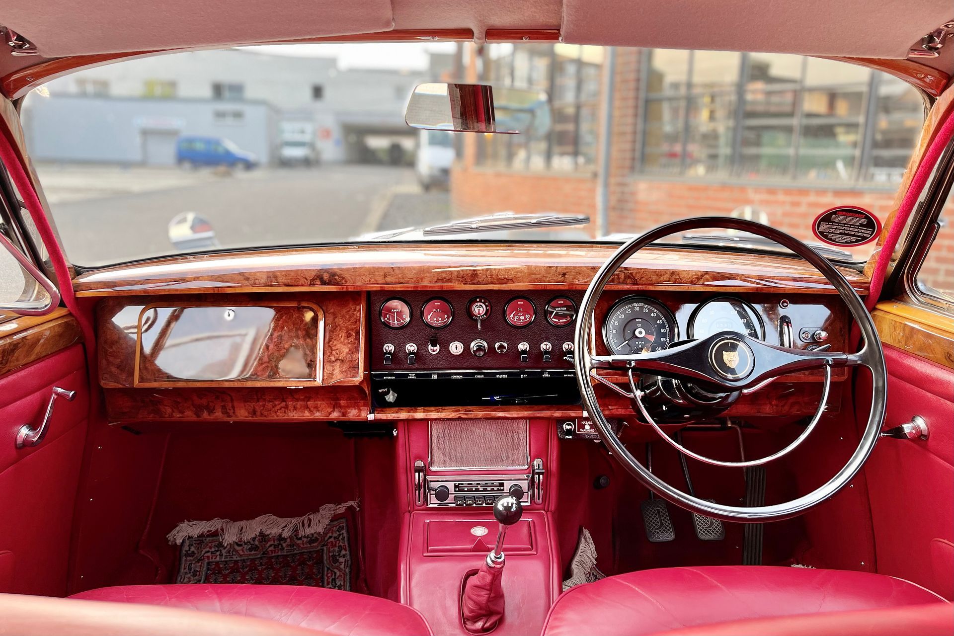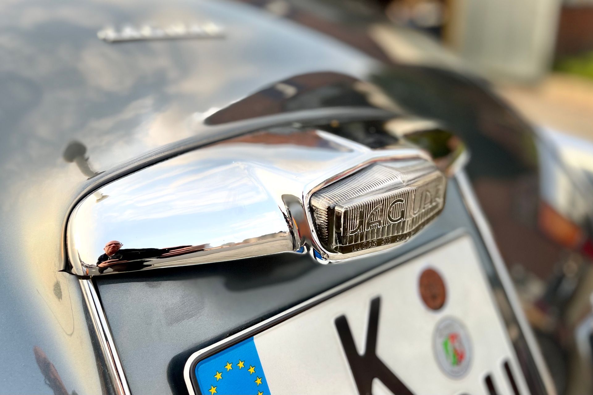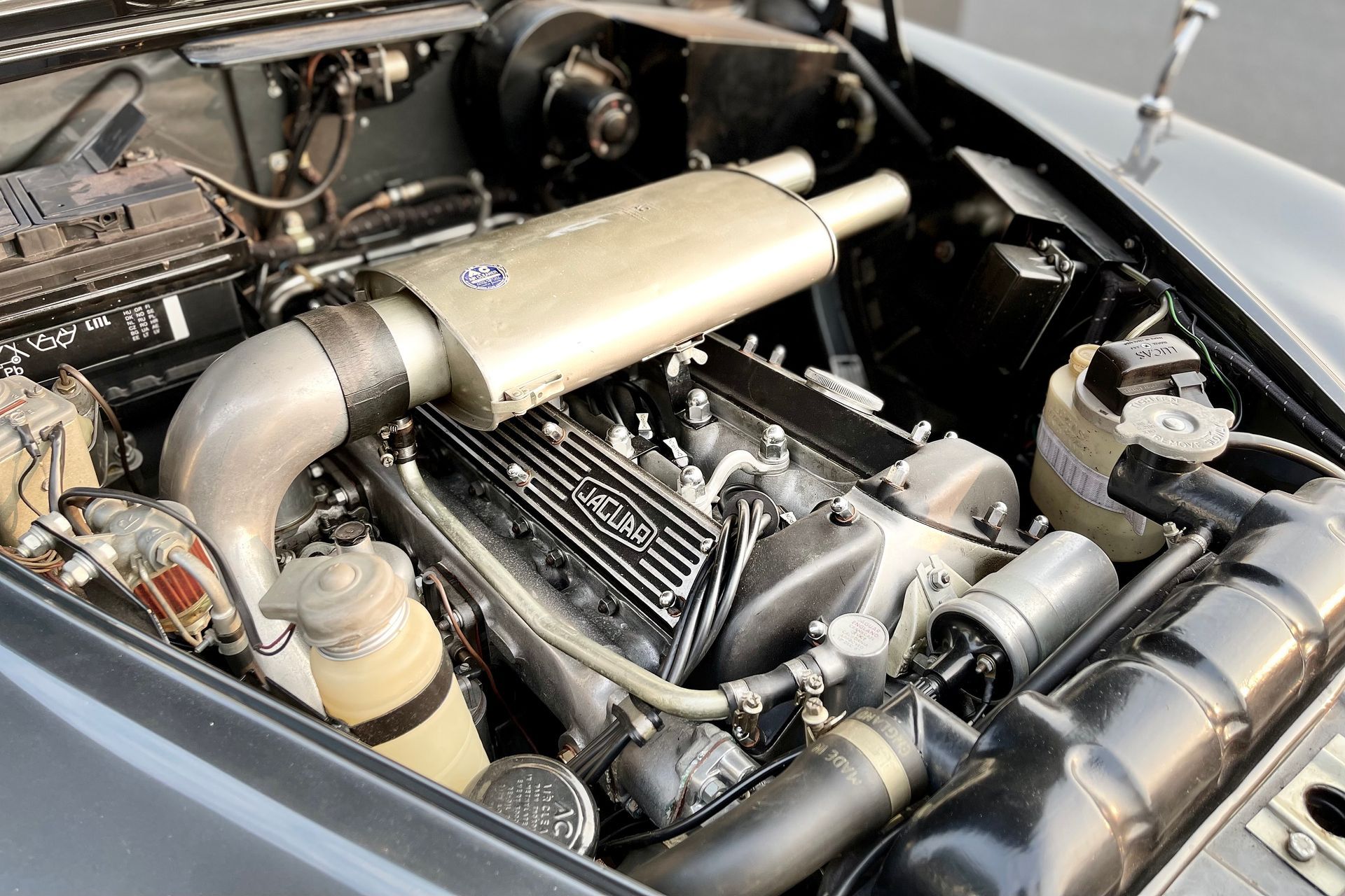 Dieser wunderschöne Jaguar war über 30 Jahre in einer Hand. Zwischen 1990 und 1995 wurde der Wagen vollständig restauriert. Bei der Restaurierung wurde der Lack vom blanken Metall an neu aufgebaut. Motor, Getriebe und Overdrive sind überholt worden und nach Abschluss der Arbeiten wurde der Jaguar knapp 11.000 km bewegt. Der Gesamtaufwand der Restaurierung lag bei über DM 122.000,00. Eine ausführliche Fotodokumentation sowie eine sorgfältige Aufstellung der Arbeiten und Kosten sind vorhanden. Die Arbeiten wurden sehr gut ausgeführt und der Wagen steht auch heute noch perfekt dar. Leder, Himmel, Teppiche, die Hölzer... der gesamte Innenraum ist einfach wunderschön. Lack und Chrom sind sehr gut und die Spaltmaße sind perfekt. Motor und Getriebe funktionieren so wie man es erwartet und der Overdrive schaltet sauber ein und aus. Ein soeben erstelltes Wertgutachten weist die Zustandsnote 2+ aus.