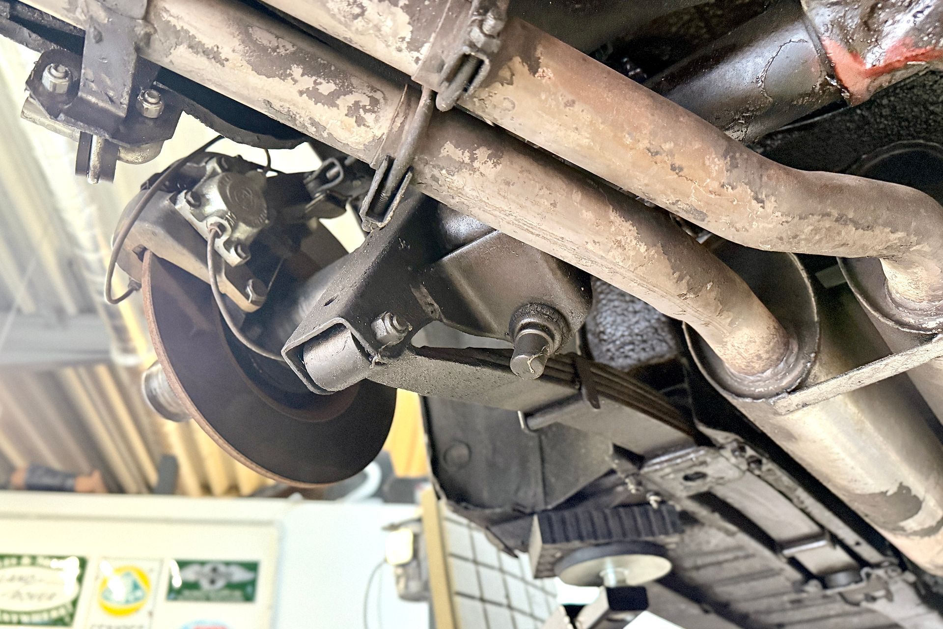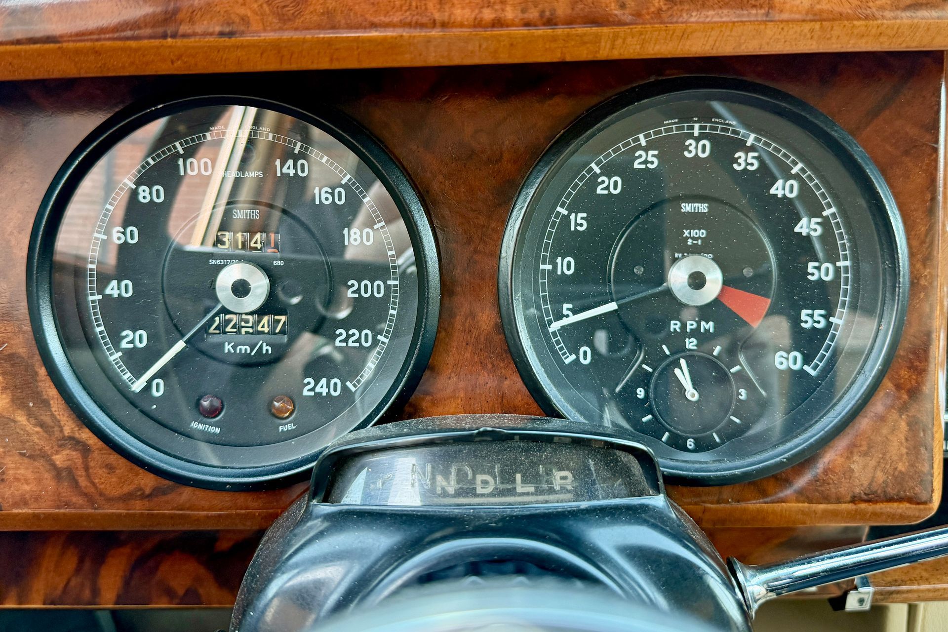 Die Ausstattung beinhaltet unter anderem das Automatikgetriebe und eine Servolenkung. Die Sitze sind - im Rahmen der damaligen Restaurierung - gegen etwas modernere Sitze mit Kopfstützen und elektrischer Verstellung getauscht worden. Moderne 3-Punkt-Gurte sind eingebaut. Das Leder zeigt ein paar Gebrauchsspuren. Die Türen schließen über eine Zentralverriegelung. Man hat ein modernes Radio in Retro-Optik und mit elektrischer Antenne verbaut. Die Zündanlage haben wir im Rahmen unserer Arbeiten instandgesetzt und hierbei einen 123-Ignition Verteiler eingebaut. Die Abgasanlage ist aus Edelstahl.