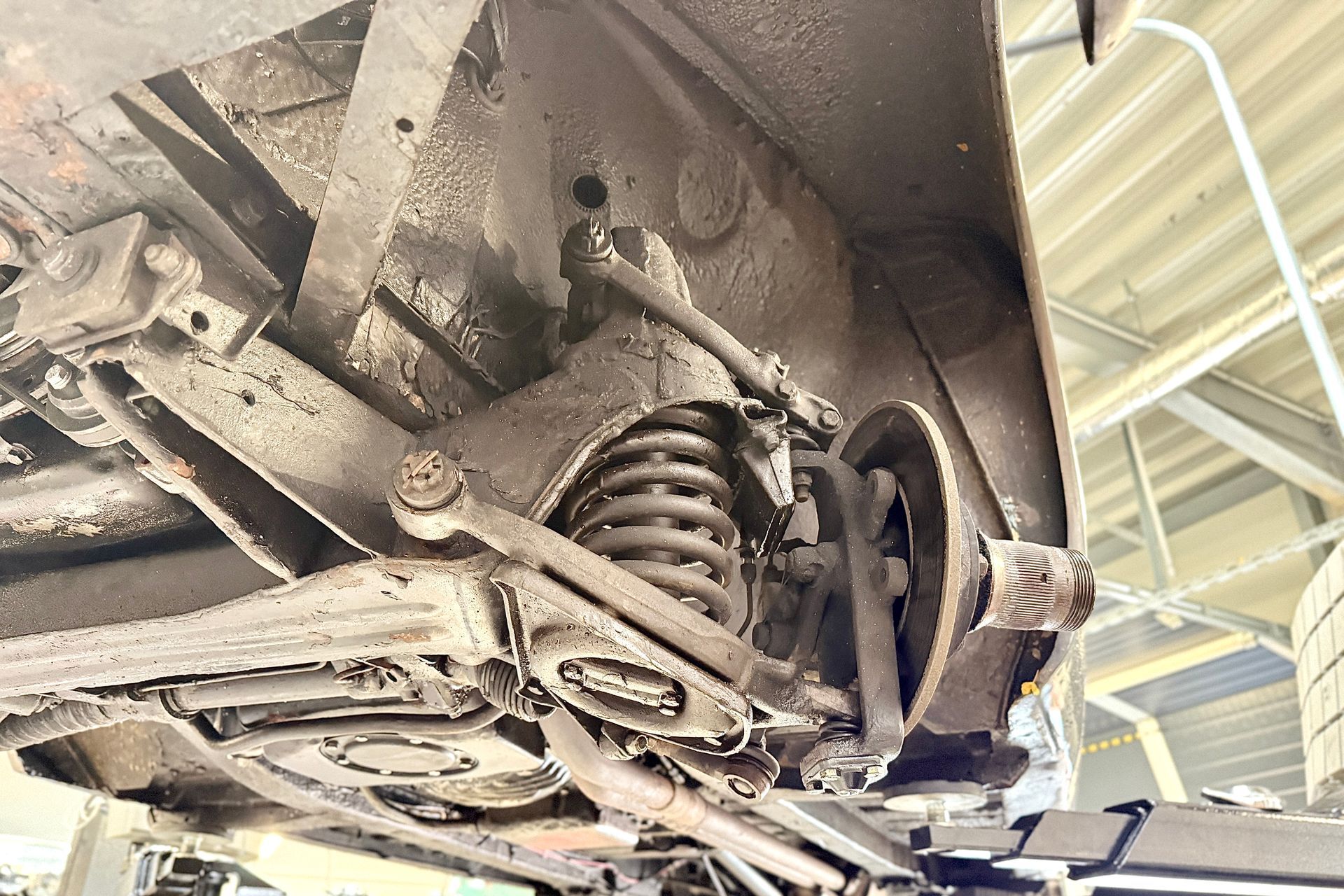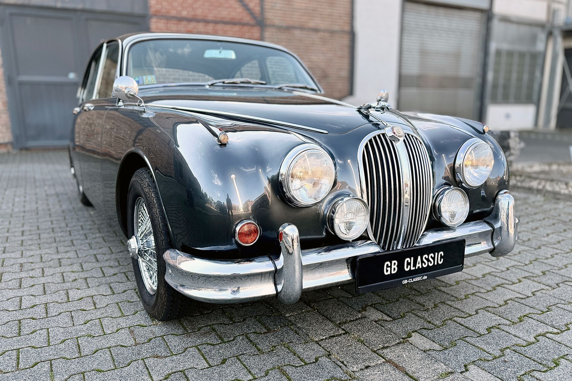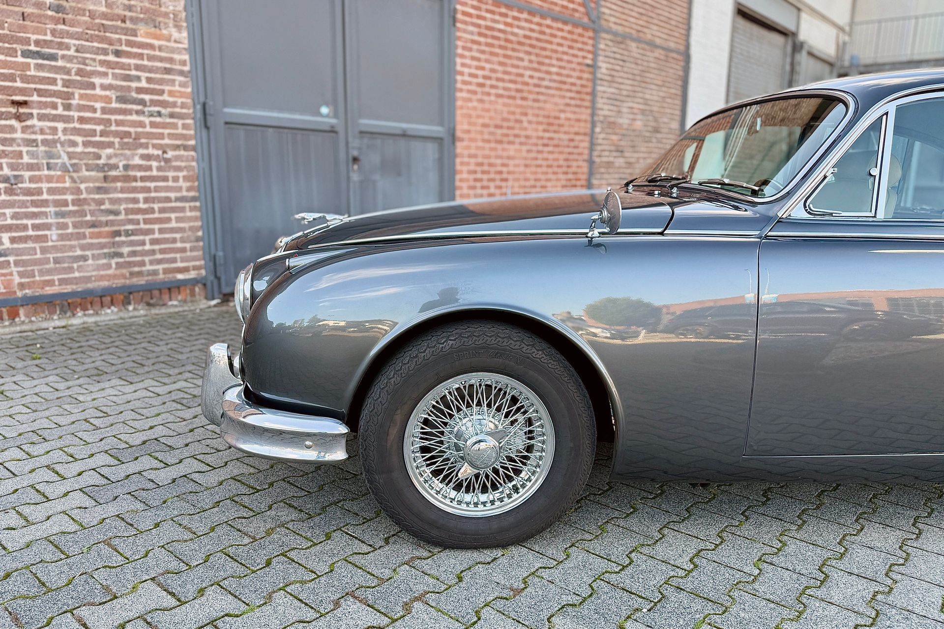 Der MK2 ist soeben in unserer Werkstatt behutsam zum Leben erweckt worden. Eine umfangreiche Inspektion ist abgeschlossen und der Jaguar hat die Hauptuntersuchung bei der DEKRA ohne Mängel bestanden. Die Reifen sowie die Schläuche sind bei uns erneuert worden - wir haben VREDESTEIN Sprint Classic auf die verchromten Speichenräder gezogen. Lack und Glas befinden sich in einem schönen Zustand, der Chrom ist teils etwas matt. Unten drunter macht der Jaguar auf uns einen guten Eindruck. Die Automatic schaltet angenehm, die Servolenkung ist im Stadtverkehr und beim rangieren eine willkommene Unterstützung.