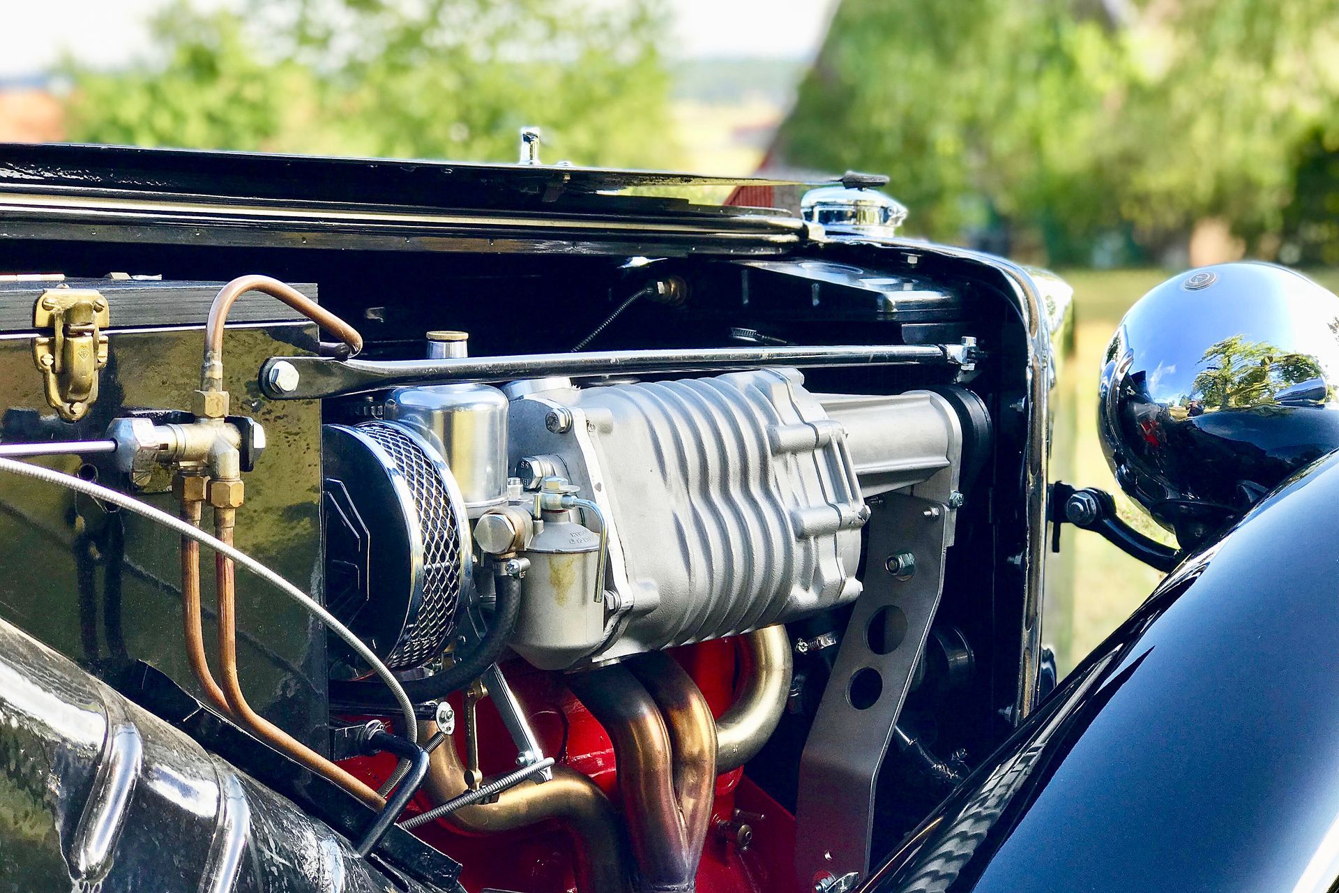 Der XPAG Motor ist 2018 vollständig neu aufgebaut worden. Die verwendeten Motorteile sind auf den Betrieb mit Kompressor gewählt. Folgende Arbeiten wurden ausgeführt: Kurbelwelle in Stahl, neue Alu-Schmiedekolben Maßanfertigung auf ca. 1380cc, Pleuel 3-fach gewogen und gewuchtet, neue Nockenwelle angepasst auf den Kompressor, Zylinderkopf überholt mit großen Ventilen und gehärteten Sitzen sowie Schaftabdichtungen, Verdichtung an die Aufladung angepasst auf 8,1. Der Eaton Kompressor hat eine etwas größere Riemenscheibe erhalten. Gemischaufbereitung über einen SU H6 Vergaser. 123 Zündanlage. Der Motor hat eine - auf dem Prüfstand gemessene Leistung - von 78 PS. Der originale MPJG Motor, das originale Getriebe (für MPJG), die Vergaseranlage sowie der originale TA Kühler sind vorhanden. Der MPJG ist 3000 km vor dem beschriebenen Umbau überholt worden. Motor, Getriebe, usw. können auf Wunsch erworben werden. Der TA hat äußerst zuverlässig Ausfahrten, Rallyes, Teilnahmen am Oldtimer Grand Prix und dem Vintage Meeting am Nürburgring absolviert. Dieser MG ist im Privatbesitz des Firmeninhabers. Der TA verlässt unseren Betrieb mit einer frischen großen Inspektion und einer neuen Hauptuntersuchung.