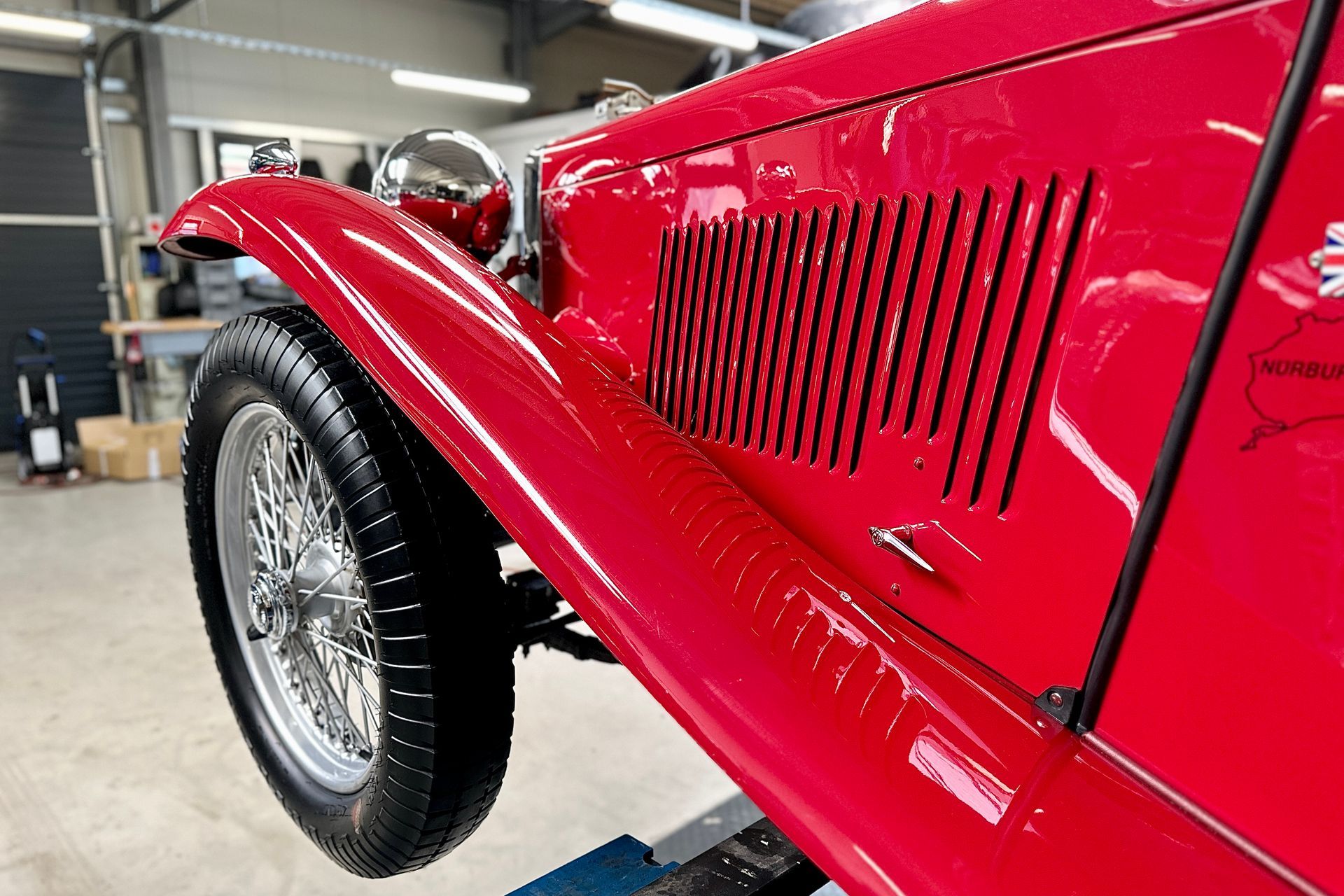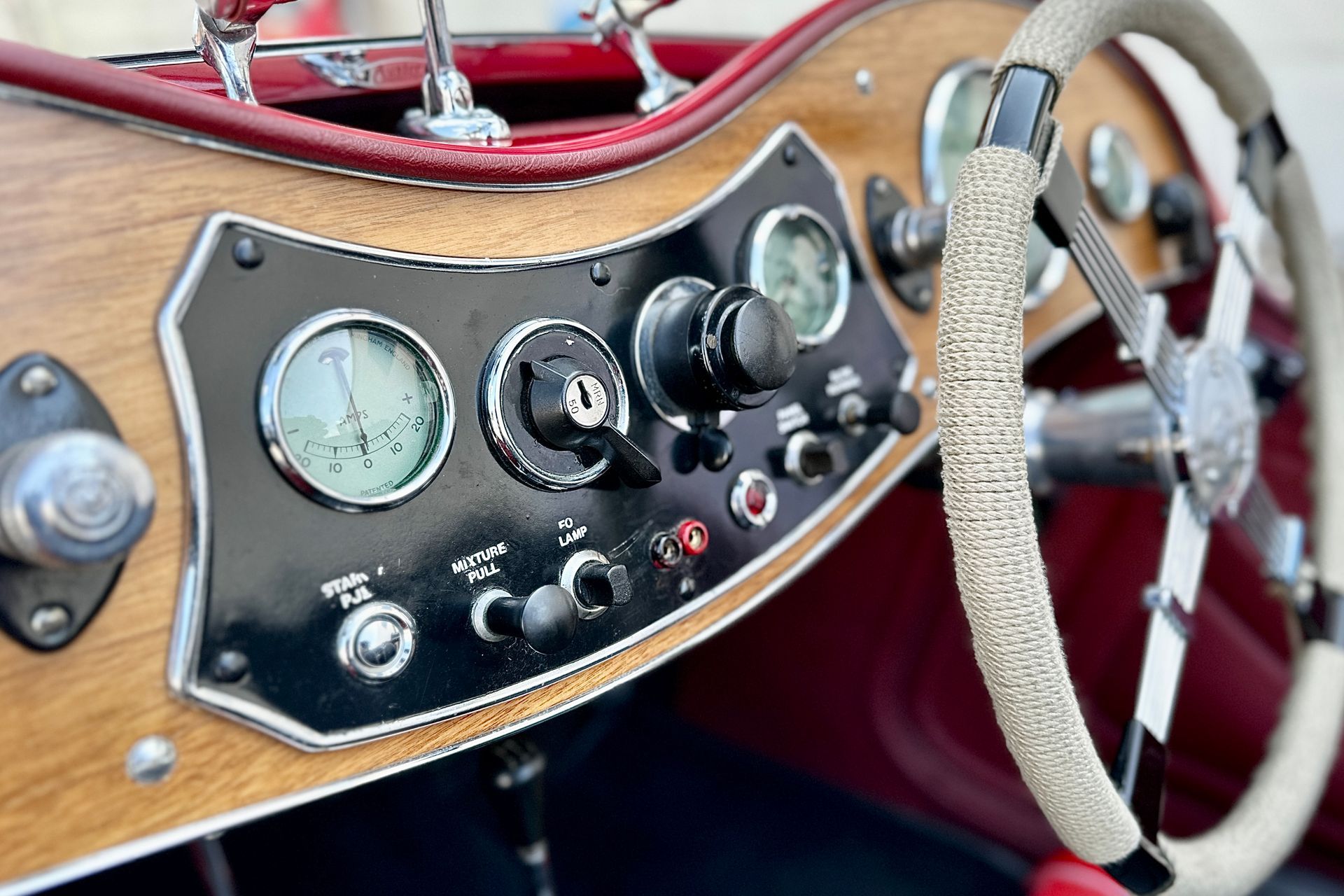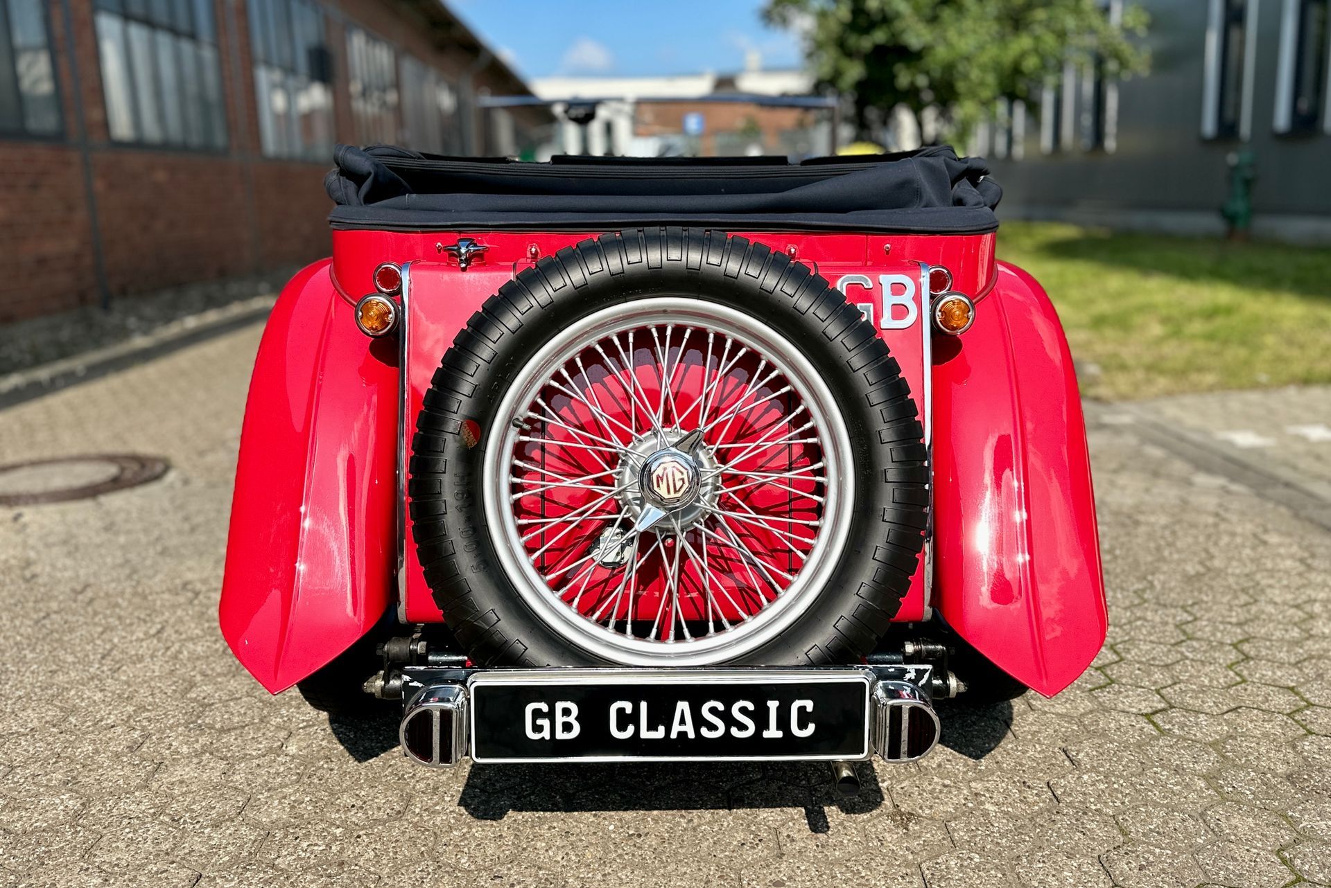 Dieser wirklich sehr schöne MG TC ist jetzt 10 Jahre bei einem Besitzer und wurde in dieser Zeit regelmäßig bei Ausfahrten und Rallyes eingesetzt. Restauriert wurde der TC von einem Enthusiasten in Dänemark. Der heute noch sehr gute Zustand zeugt von der Qualität und dem Sachverstand des dänischen MG Enthusiasten. Der MG ist mit Einzelsitzen in schwarzem Leder ausgestattet; die originalen Sitze mit der durchgehenden Rückbank sind vorhanden und werden dem neuen Eigentümer übergeben. Die originalen Sitze befinden sich in einem guten Zustand. Für den Einsatz bei Oldtimer Rallyes wurde ein Tripmaster eingebaut, welcher auch im Kaufpreis enthalten ist. Ein klappbarer Gepäckträger ist bei dem Fahrzeug und kann mit wenig Aufwand montiert werden.