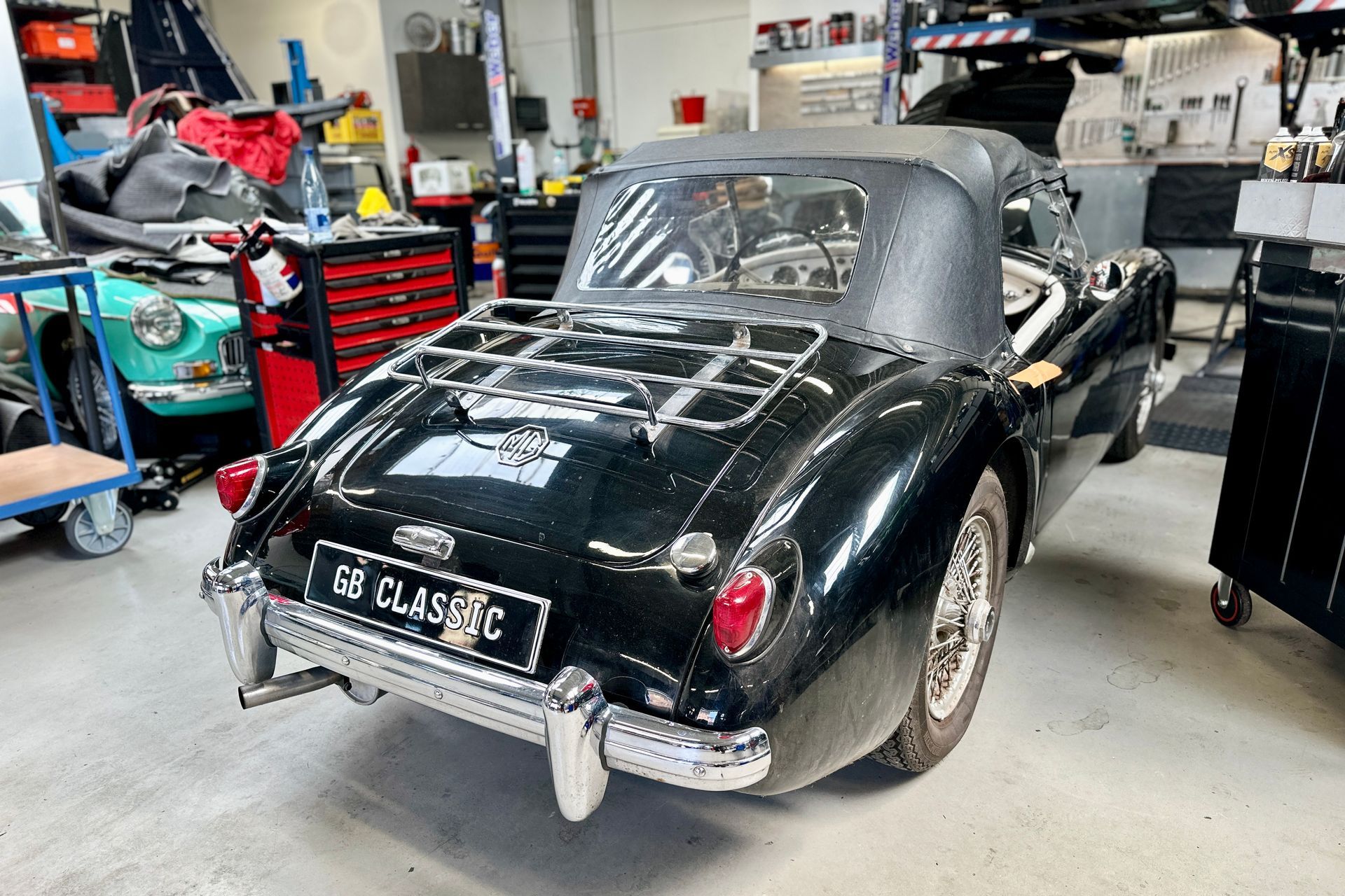Um es direkt vorweg zu nehmen: dieser MGA 1500 benötigt etwas mehr als nur "ein bisschen" Aufmerksamkeit! Die Elektrik hat einige Macken und wir empfehlen den Einbau eines neuen Kabelbaums. Eine große Inspektion ist erforderlich und die dabei festgestellten Mängel sollten abgearbeitet werden... am langen Ende sind dann die Reifen zu erneuern. Der Motor läuft und der MGA hat eine gültige HU bis Mai 2025. Der Lack hat einige kleinere Beschädigungen und ist im gesamten nicht mehr schön. Der linke Kotflügel hat Risse im Lack. Das Verdeck ist aus Vinyl und ist OK. Wir hatten den MGA auf der Hebebühne und die Substanz ist gut! Die Bauteile der Vorderachse und ein paar sonstige Anbauteile haben oberflächlich Rost. Was man noch wissen kann: der MGA ist jetzt seit fast 20 Jahren bei einem Eigentümer und es sind einige Unterlagen zur Historie vorhanden.