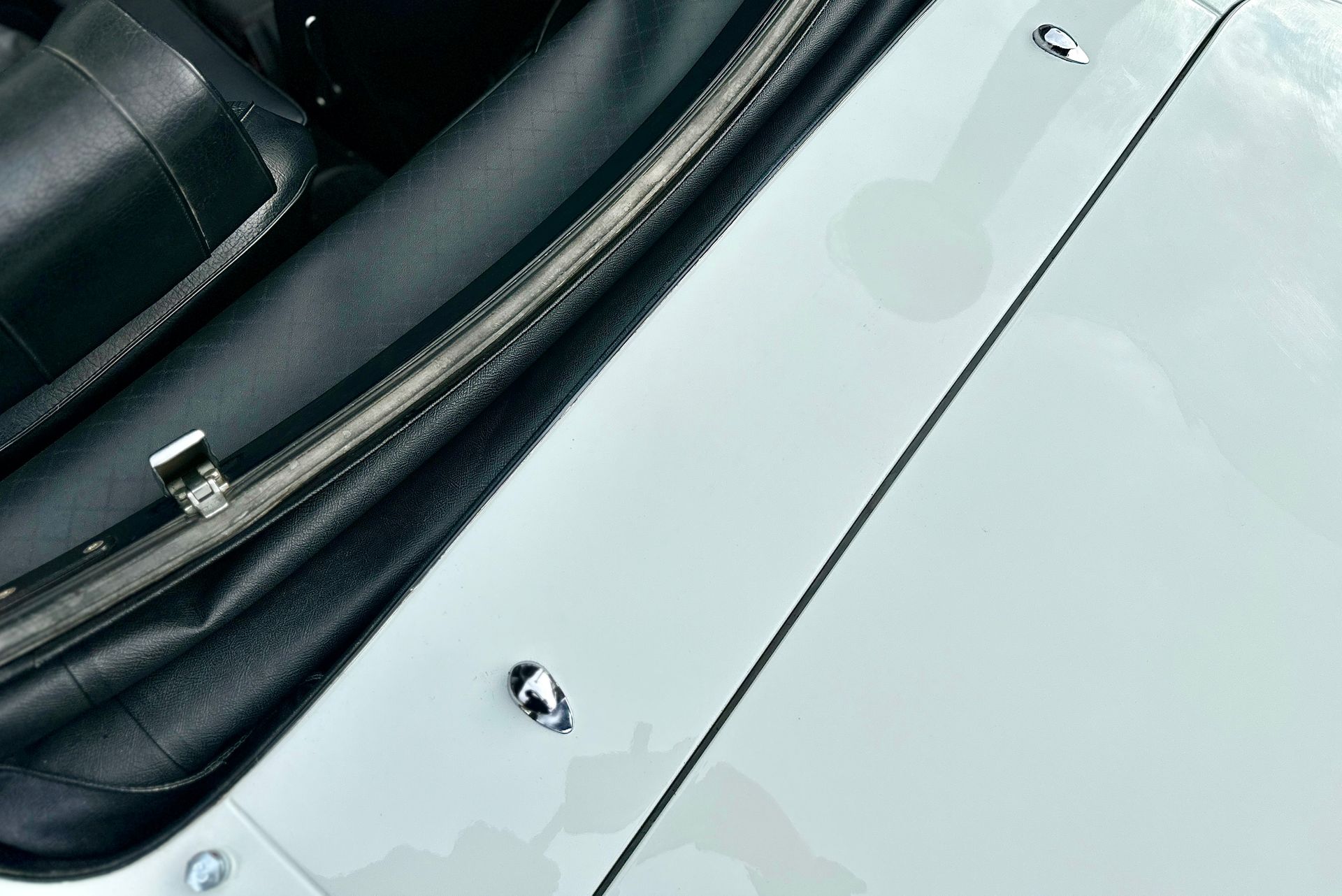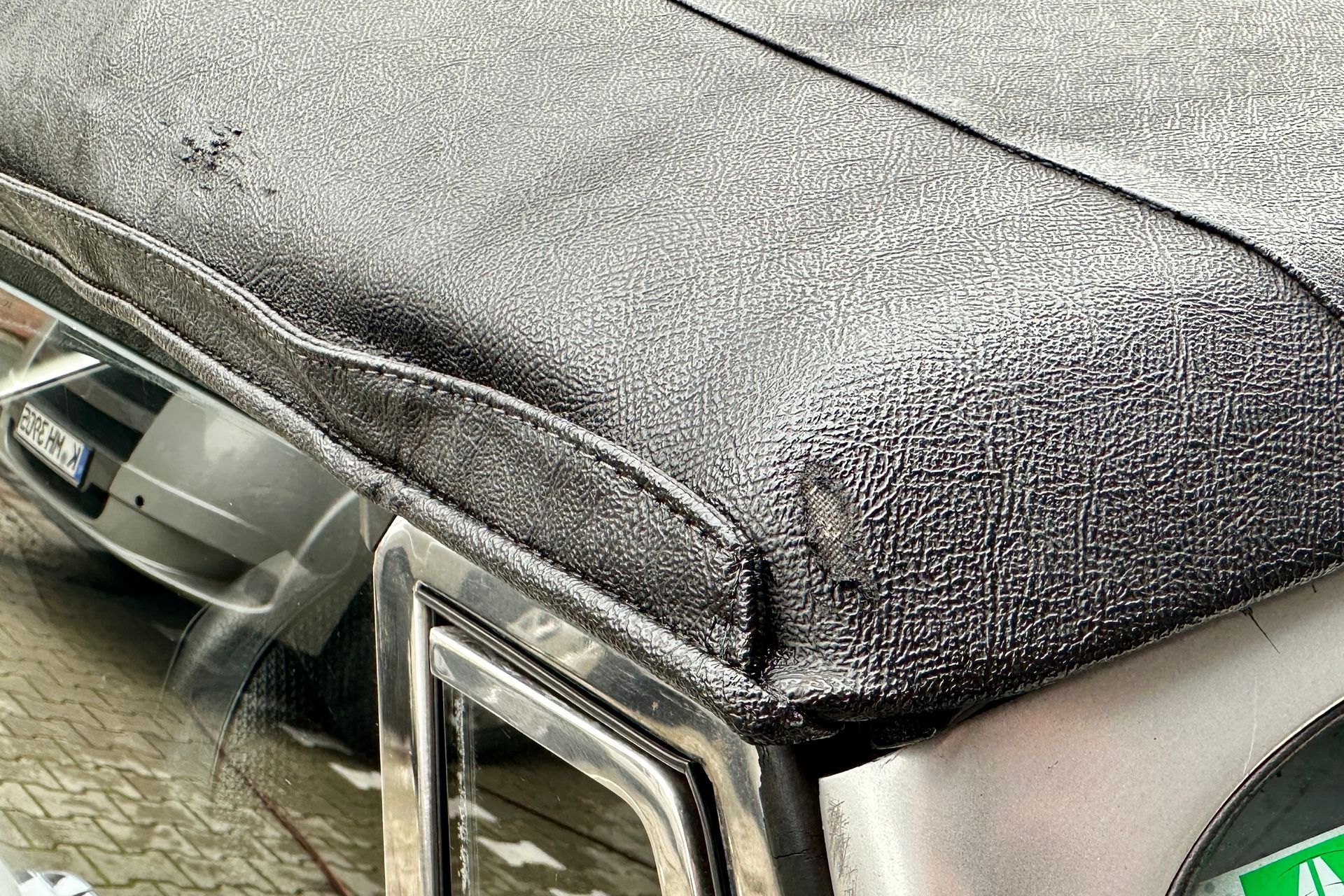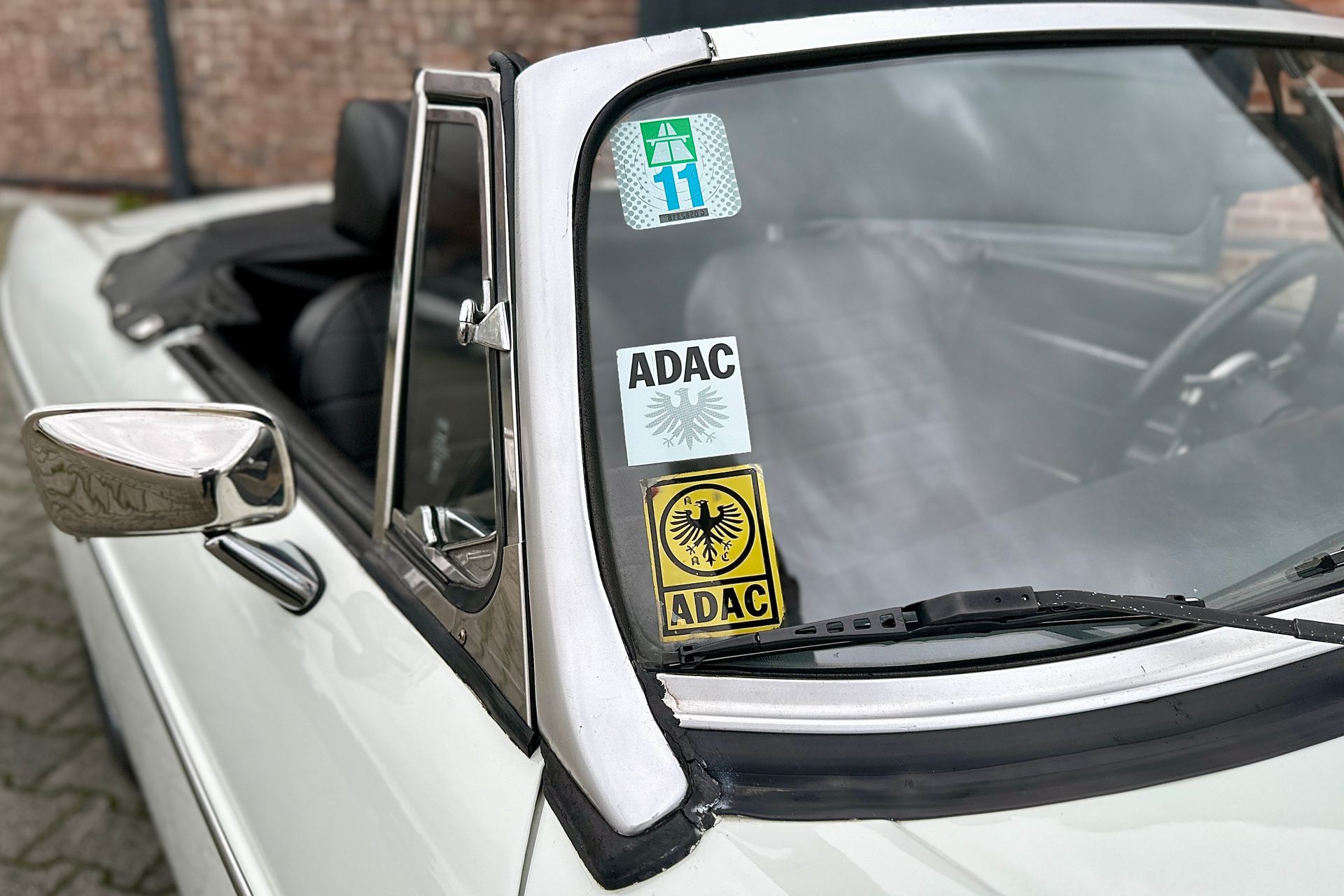 Bei uns wurde soeben eine große Inspektion durchgeführt: Tausch aller Öle und Hydraulikflüssigkeiten, neue Reifen, Einstellung Ventile/Zündung/Vergaser, neue Batterie, neue Spurstangenköpfe ... und und und. Die Hauptuntersuchung mit AU ist ohne Beanstandung und sichtbare Mängel durchgeführt worden. Aufmerksamkeit verdient der Innenraum: die Türpappen sind etwas verformt, Teppiche sowie Gummimatten sind rissig und nicht mehr schön... an dem Innenraum kann der neue Eigentümer also noch arbeiten und den insgesamt guten Gesamteindruck noch verbessern. Das Verdeck (vermutlich das erste) ist intakt, hat aber ein paar kleinere Verschleißstellen. Eine Halbpersenning und eine Vollpersenning sind bei dem Auto. Verbaut ist ein "Retro-Sound" Radio (ca. € 500,00) sowie eine elektrische Antenne. Das Lenkrad ist ein Moto-Lita 14 Zoll Lenkrad mit Lederkranz und passender Nabe.