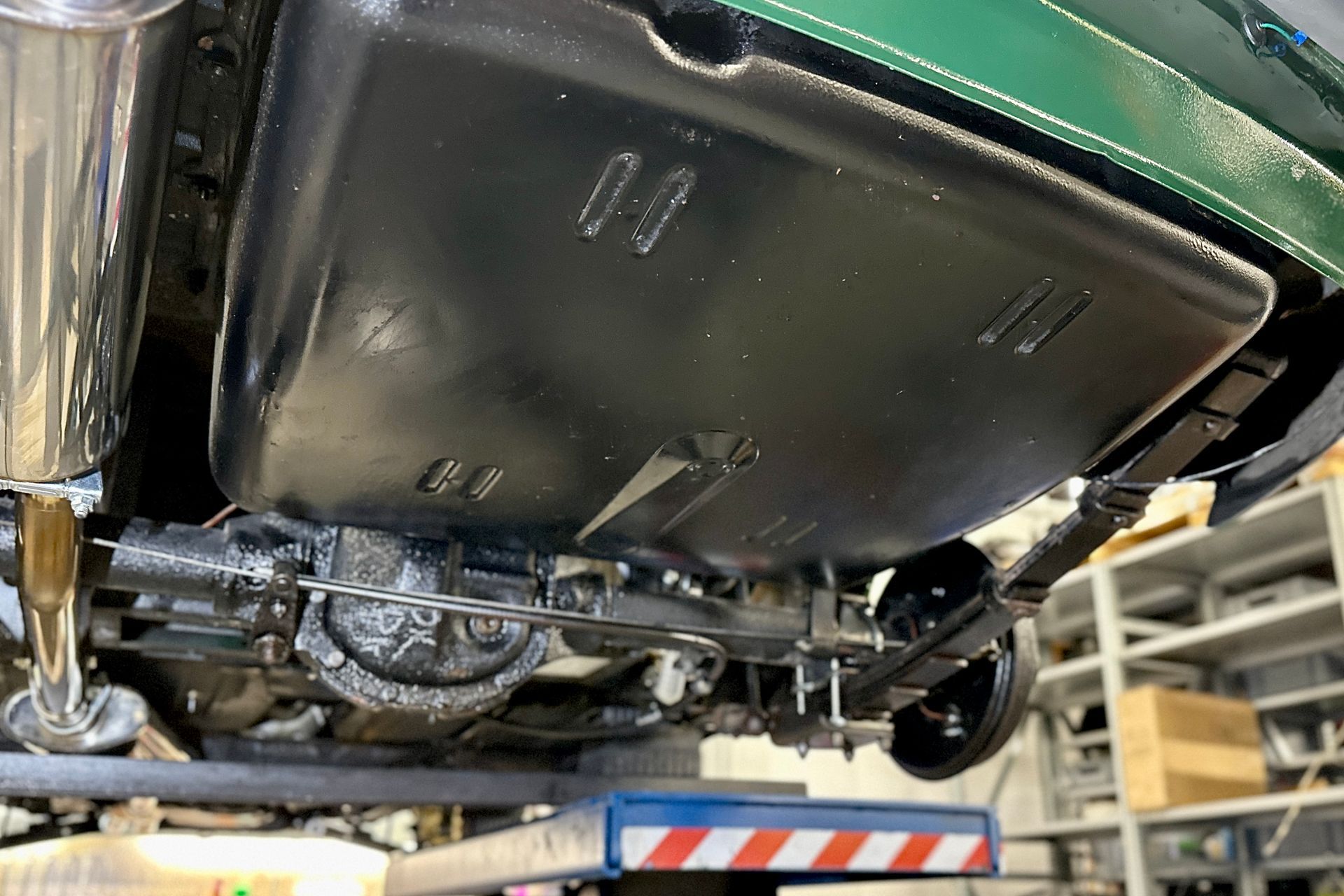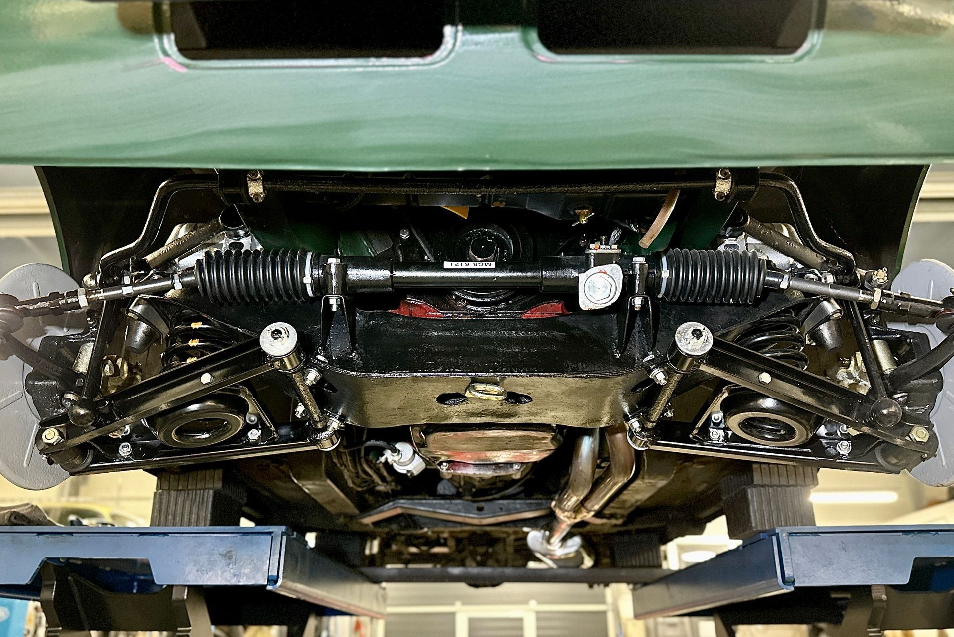 Dieser MGB GT ist vor einigen Jahren auf einer neuen Heritage Karosserie aufgebaut worden. Bei dem Umbau wurde der GT als Linkslenker gebaut. Die Innenausstattung ist neuwertig: beiges Leder, grüne Teppiche, Armaturenbrett in Holz. Weitere Ausstattungen: Faltschiebedach, Speichenräder, Overdrive. Der GT ist bei dem jetzigen Besitzer mit Neuteilen überarbeitet worden. In unserer Werkstatt hat der MG soeben eine umfangreich Inspektion/Wartung erhalten und die Reifen/Schläuche sind erneuert worden. Jetzt folgt noch eine Abnahme für das H Kennzeichen und eine neue Hauptuntersuchung. Das Auto steht technisch und optisch wunderbar dar und ist zur Saison startklar.