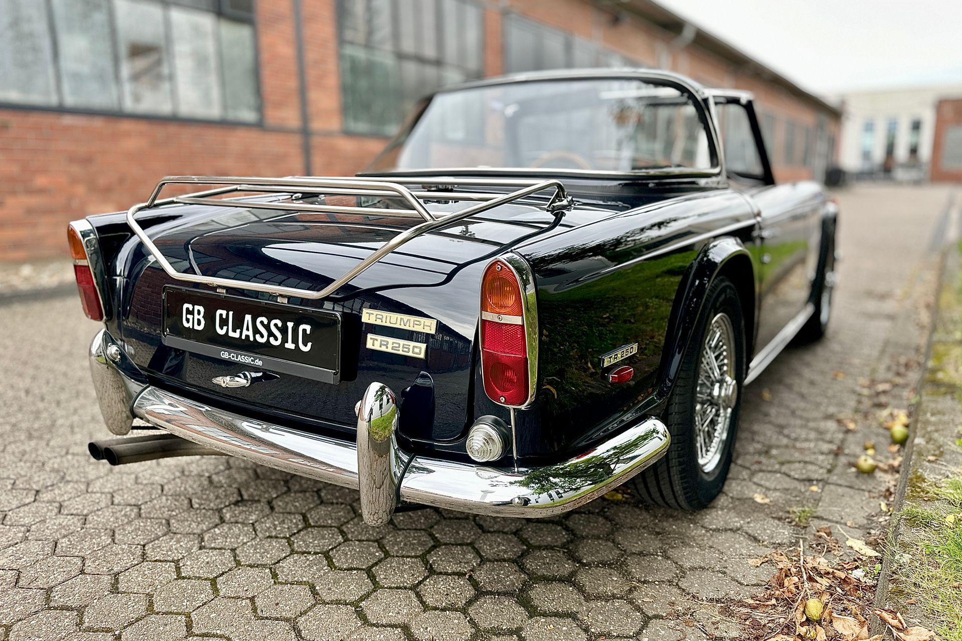 Da geht wohl der Puls jedes Triumph Enthusiasten nach oben! Der TR250 vereint das ikonische Design des TR4 - gezeichnet von Giovanni Michelotti - mit dem bärigen und unverwüstlichen 6-Zylinder-Motor. Dieser TR250 ist gute 10 Jahre bei dem jetzigen Eigentümer. Die frühere Restaurierung ist perfekt ausgeführt worden und der 250er steht wirklich phantastisch dar: Lack, Chrom, Spaltmaße, die Oberflächen, Innenraum - alles ist so wie es sein soll! Der Motor spricht sehr gut an und dreht leicht und ohne Rucken. Der Vortrieb ist - für den Triumph 6-Zylinder - vorbildlich. Das Getriebe schaltet wie es soll. Ein aktuelles Classic Data Wertgutachten schließt mit einem Wiederbeschaffungswert in Höhe € 45.000,00.
