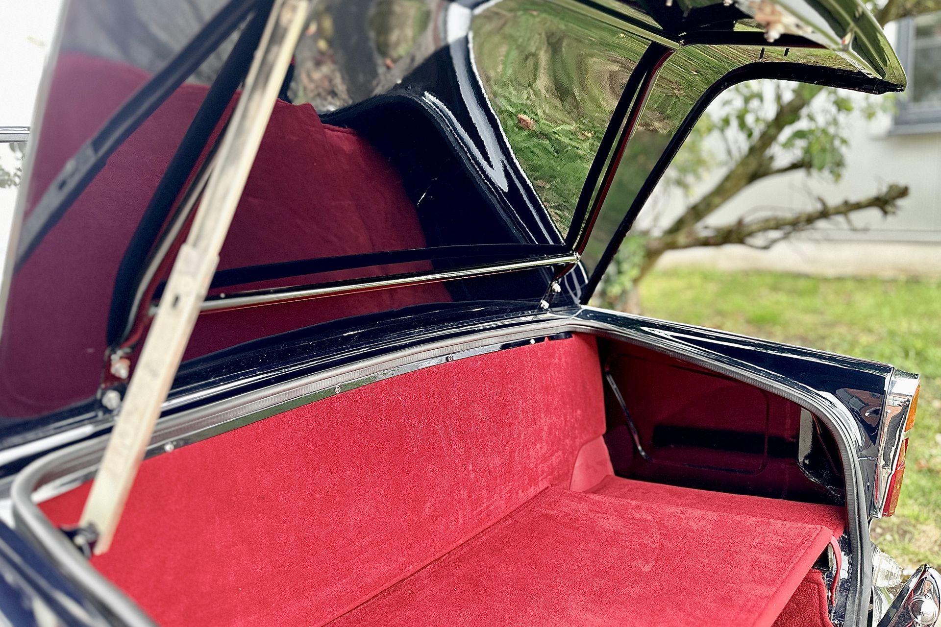 Die Ausführung als "Coupé" mit dem originalen Surrey Top ist eher selten zu finden. Wie bei einem Porsche Targa ist die Heckscheibe fest montiert. Zwischen Heck- und Frontscheibe kann ein Metalldach eingesetzt werden. Lässt man das feste Dach in der Garage, kann man bei ungünstigen Wetterbedingungen ein Stoffdach einsetzen - dieses Verdeck passt auch in eine kleinere Lücke im Kofferraum. Zusätzlich hat der Eigentümer eine Persenning für die Abdeckung des Innenraums anfertigen lassen.