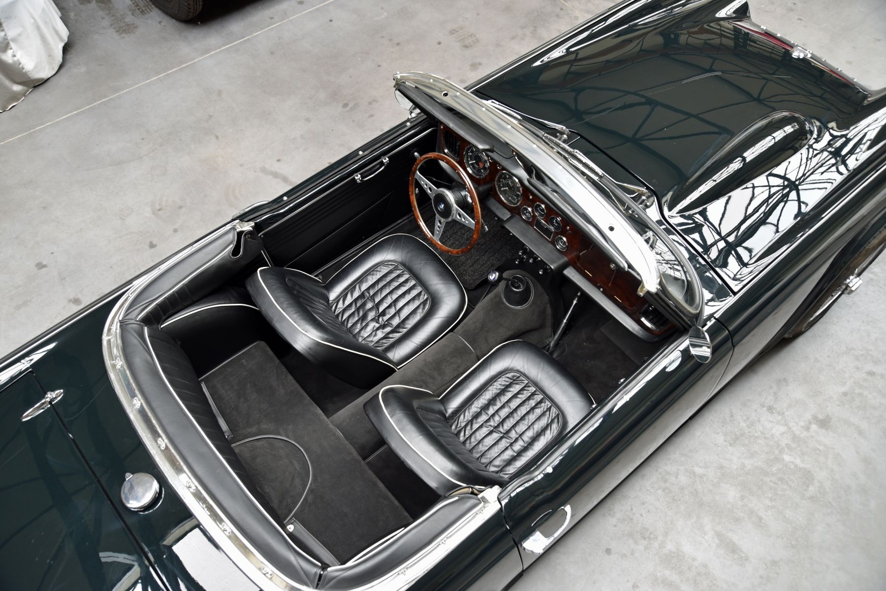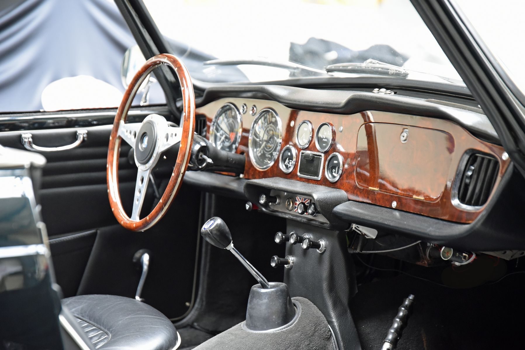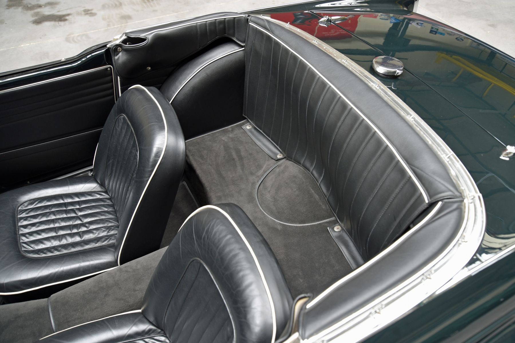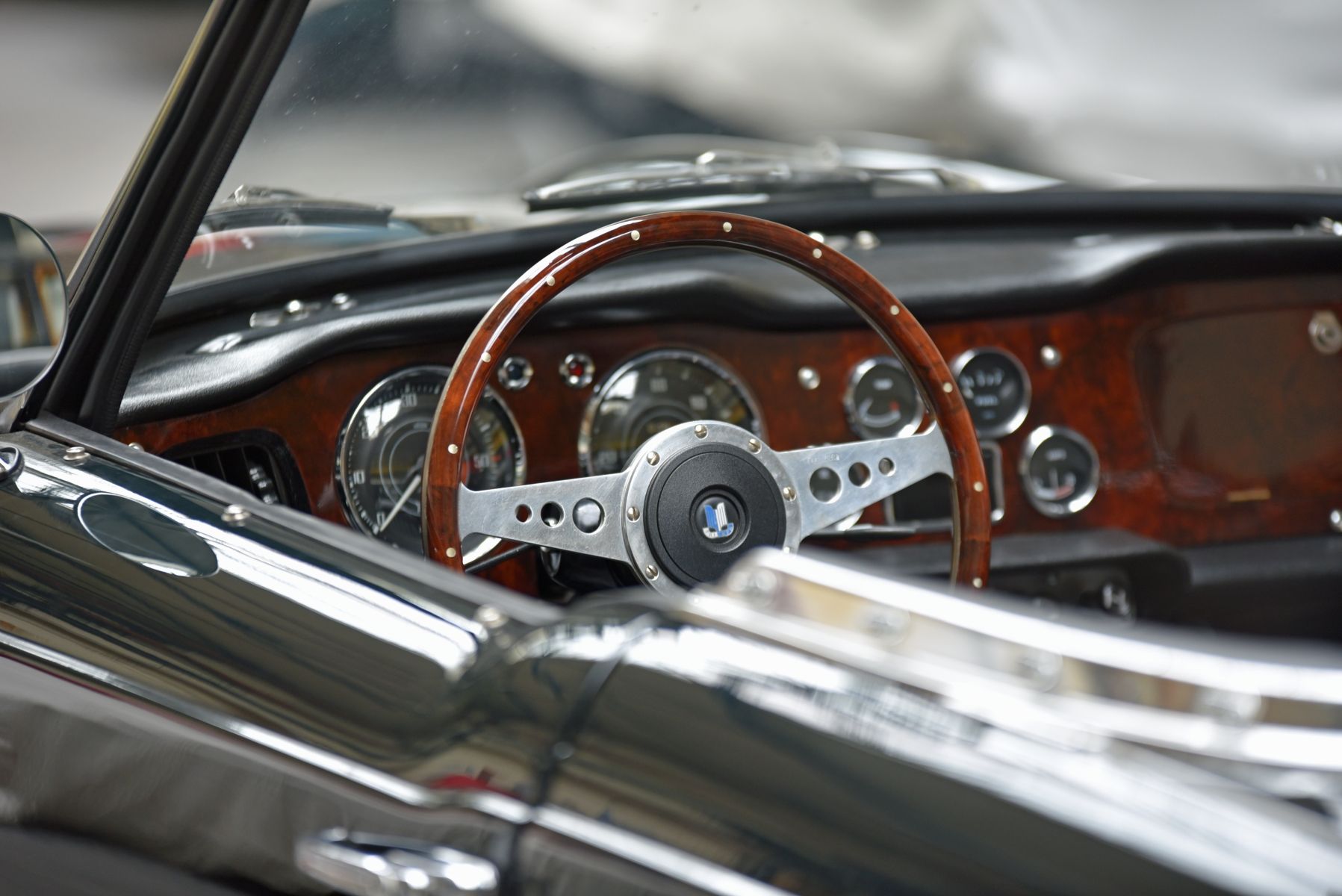Dieser Triumph TR4 wurde für die USA produziert und in den Staaten am 01.07.1963 zum ersten mal zugelassen. Nach dem Import nach Deutschland, erfolgte eine umfangreiche Restaurierung. Vor einigen Jahren gind der TR4 in neue Hände und der jetzige Besitzer hat den Wagen sehr umfangreich geprüft und perfektioniert. Teilerechnungen von rund € 4.600,00 Euro und über 150 KFZ-Meister-Stunden wurden investiert. Die Farbe ist dunkelgrün und wirkt - man kann dies auf den Fotos gut sehen - je nach Beleuchtung und Blickwinkel schwarz. Der Innenraum ist perfekt. Die Ledersitze haben einen weißen Keder. Das Armaturenbrett ist in Wurzelholz, das sportliche Lenkrad fügt sich in das harmonische Gesamtbild ein. Das Wetterequipment ist komplett und beinhaltet ein Verdeck sowie ein Voll-Tonneau.