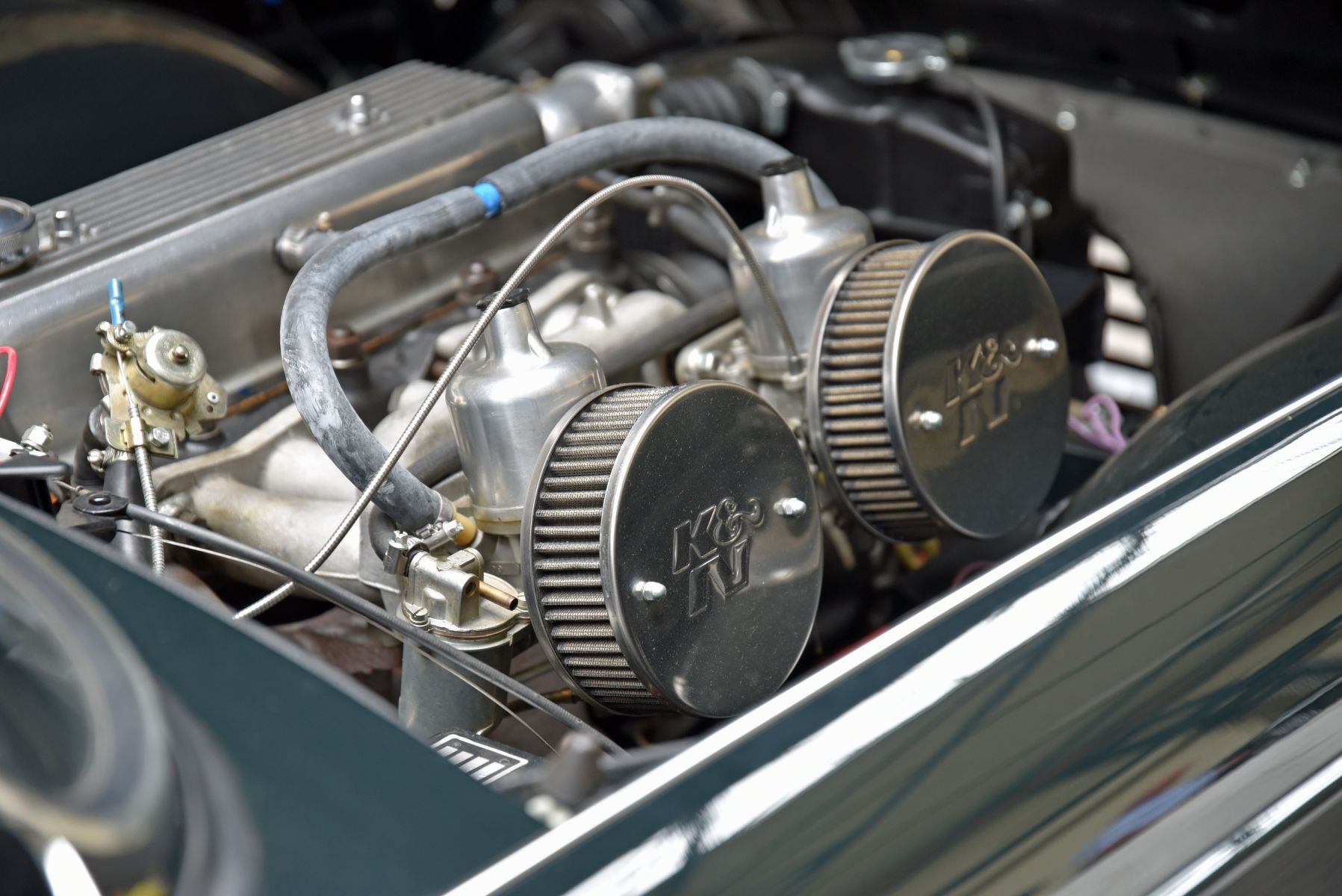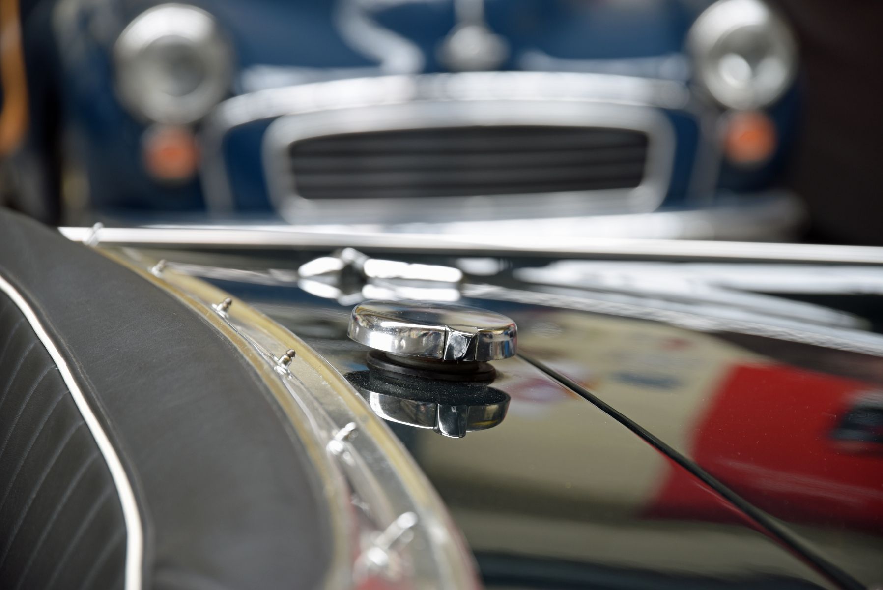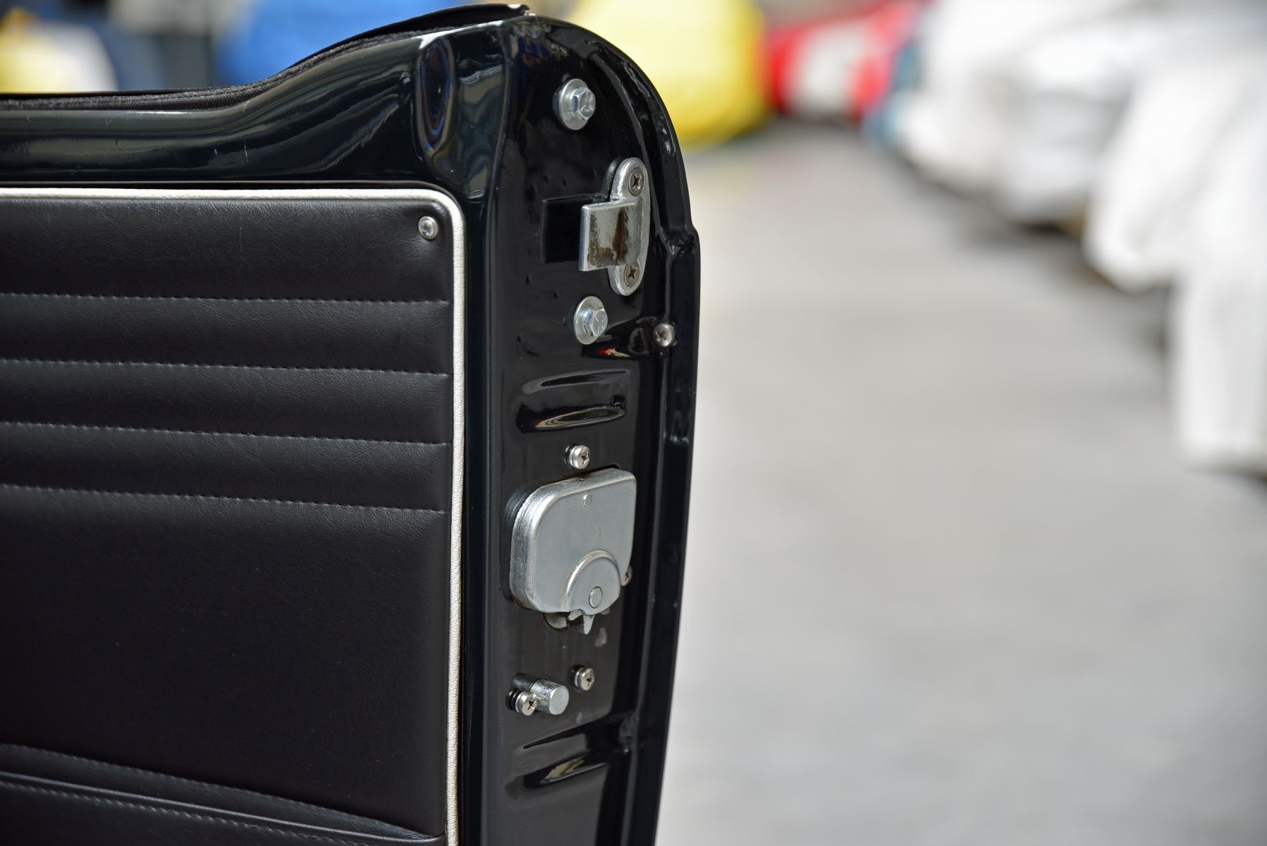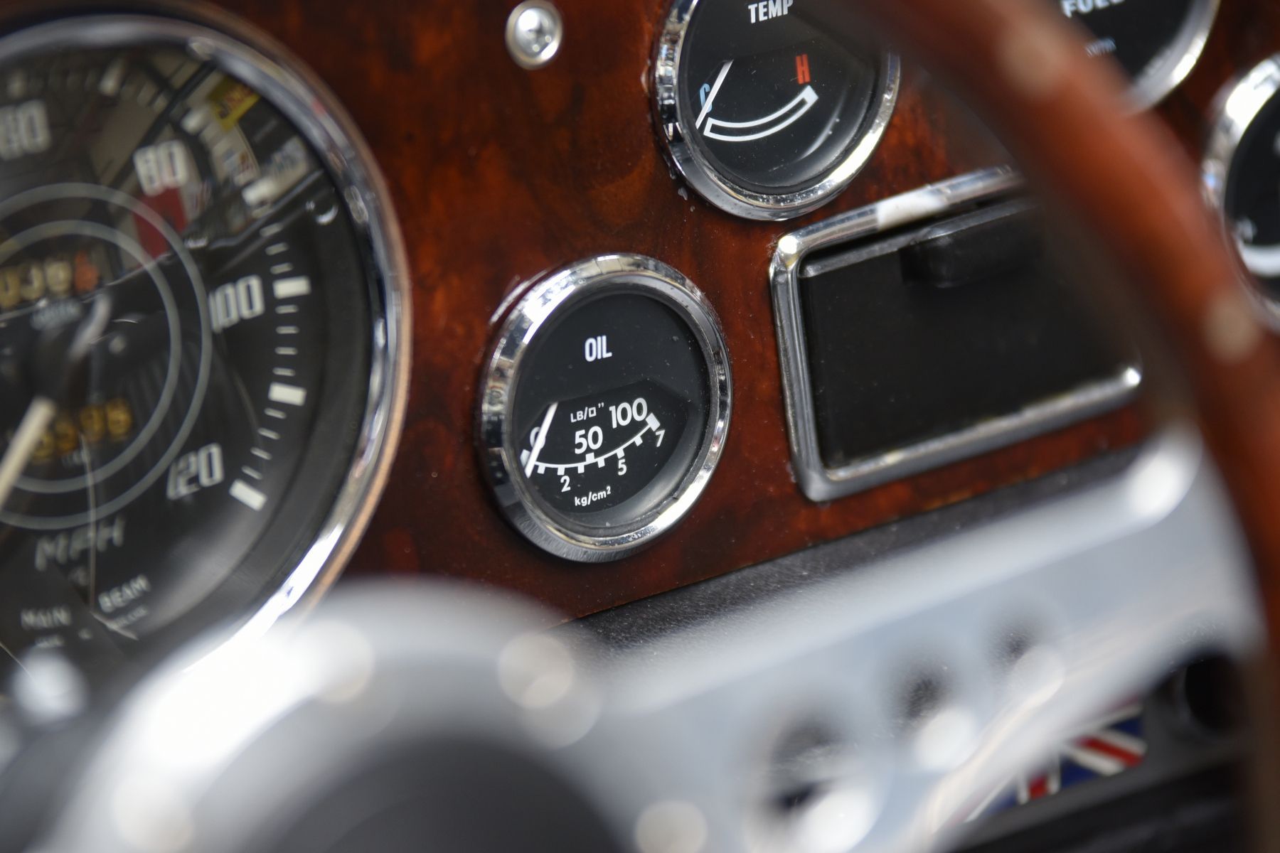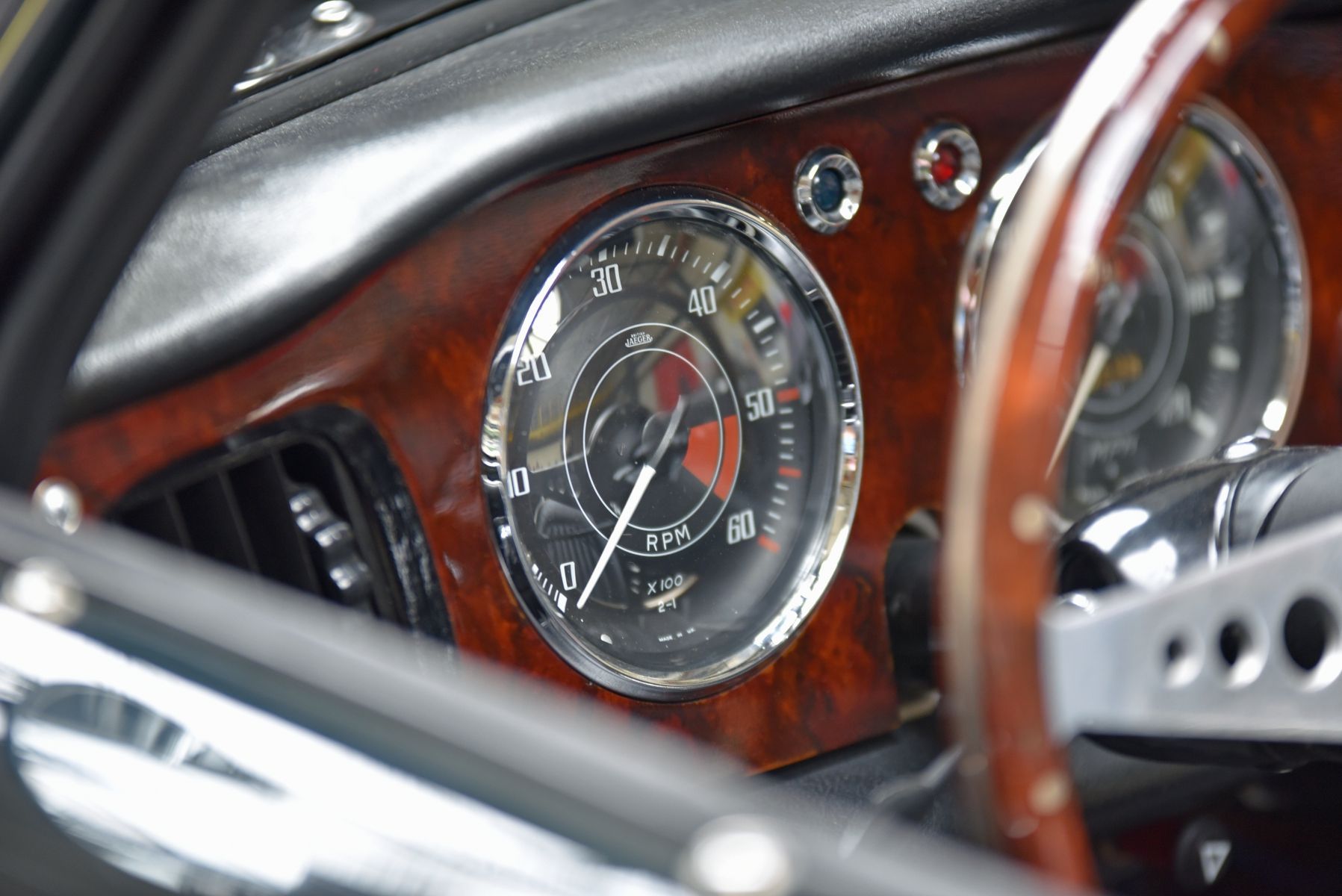Dieser Triumph TR4 wurde für die USA produziert und in den Staaten am 01.07.1963 zum ersten mal zugelassen. Nach dem Import nach Deutschland, erfolgte eine umfangreiche Restaurierung. Vor einigen Jahren gind der TR4 in neue Hände und der jetzige Besitzer hat den Wagen sehr umfangreich geprüft und perfektioniert. Teilerechnungen von rund € 4.600,00 Euro und über 150 KFZ-Meister-Stunden wurden investiert. Die Farbe ist dunkelgrün und wirkt - man kann dies auf den Fotos gut sehen - je nach Beleuchtung und Blickwinkel schwarz. Der Innenraum ist perfekt. Die Ledersitze haben einen weißen Keder. Das Armaturenbrett ist in Wurzelholz, das sportliche Lenkrad fügt sich in das harmonische Gesamtbild ein. Das Wetterequipment ist komplett und beinhaltet ein Verdeck sowie ein Voll-Tonneau.